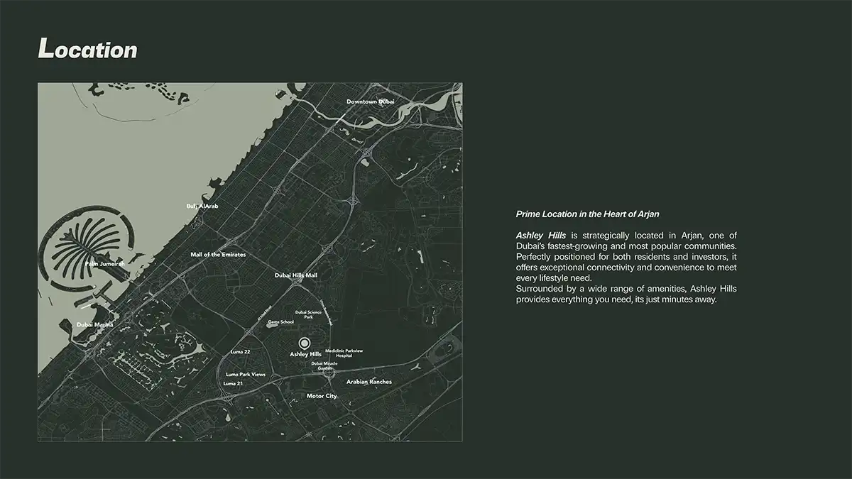 Ashley Hills is planned as a compact residential community rather than a dense tower cluster. Green spaces, shared facilities, and circulation areas are arranged to keep movement simple and views open. The focus is on livability, not over-development.