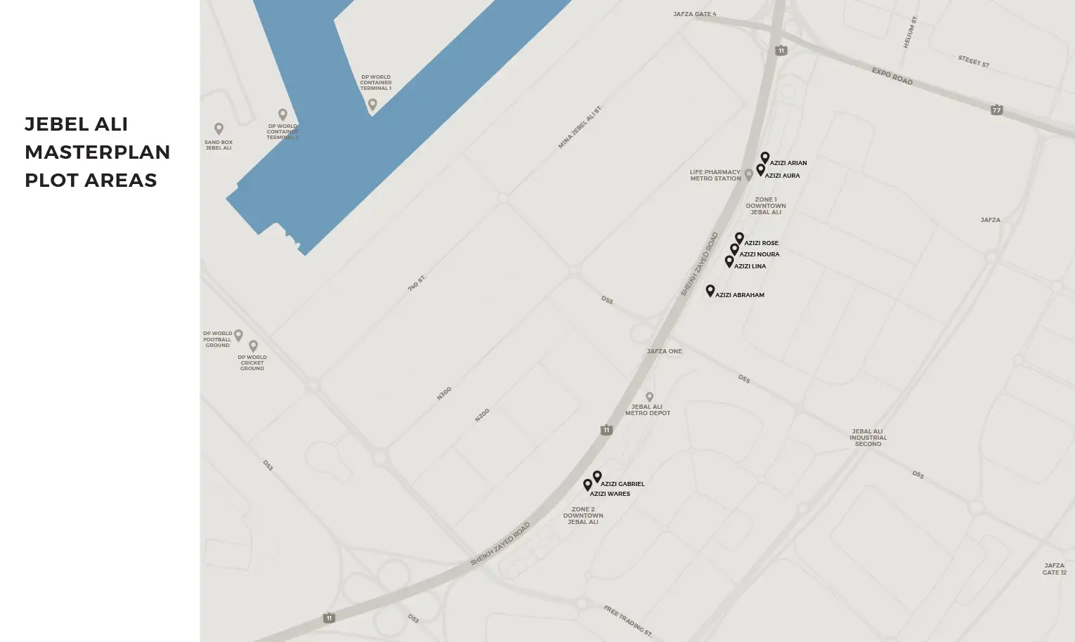 Landscaping is used to soften the urban environment, giving residents a more residential feel even as Downtown Jebel Ali continues to develop around it.