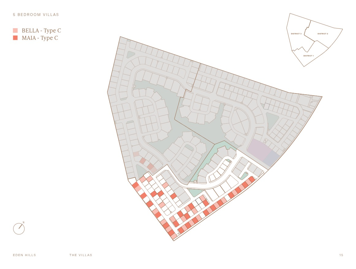 Eden Hills is planned around its central wadi and the green infrastructure that branches from it, connecting villa clusters through walking and cycling routes rather than roads. The low-density layout gives each villa meaningful distance from its neighbours, and the overall community scale is large enough to feel like a neighbourhood without becoming impersonal.