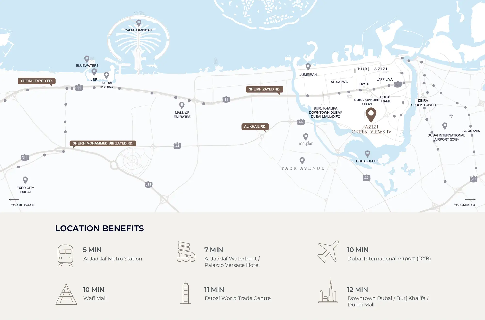 Creek Views 4 by Azizi Developments is designed as a boutique residential tower within Al Jaddaf, where compact scale, waterfront positioning, and urban connectivity shape the overall planning approach. Unlike large-scale master communities, the focus here is on efficient vertical living with premium lifestyle integration, ensuring that every element of the building contributes directly to resident experience.