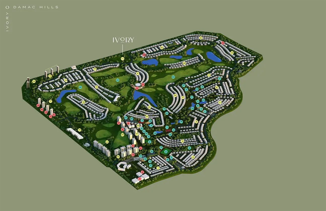 Ivory fits into the wider DAMAC Hills master plan rather than standing apart from it.