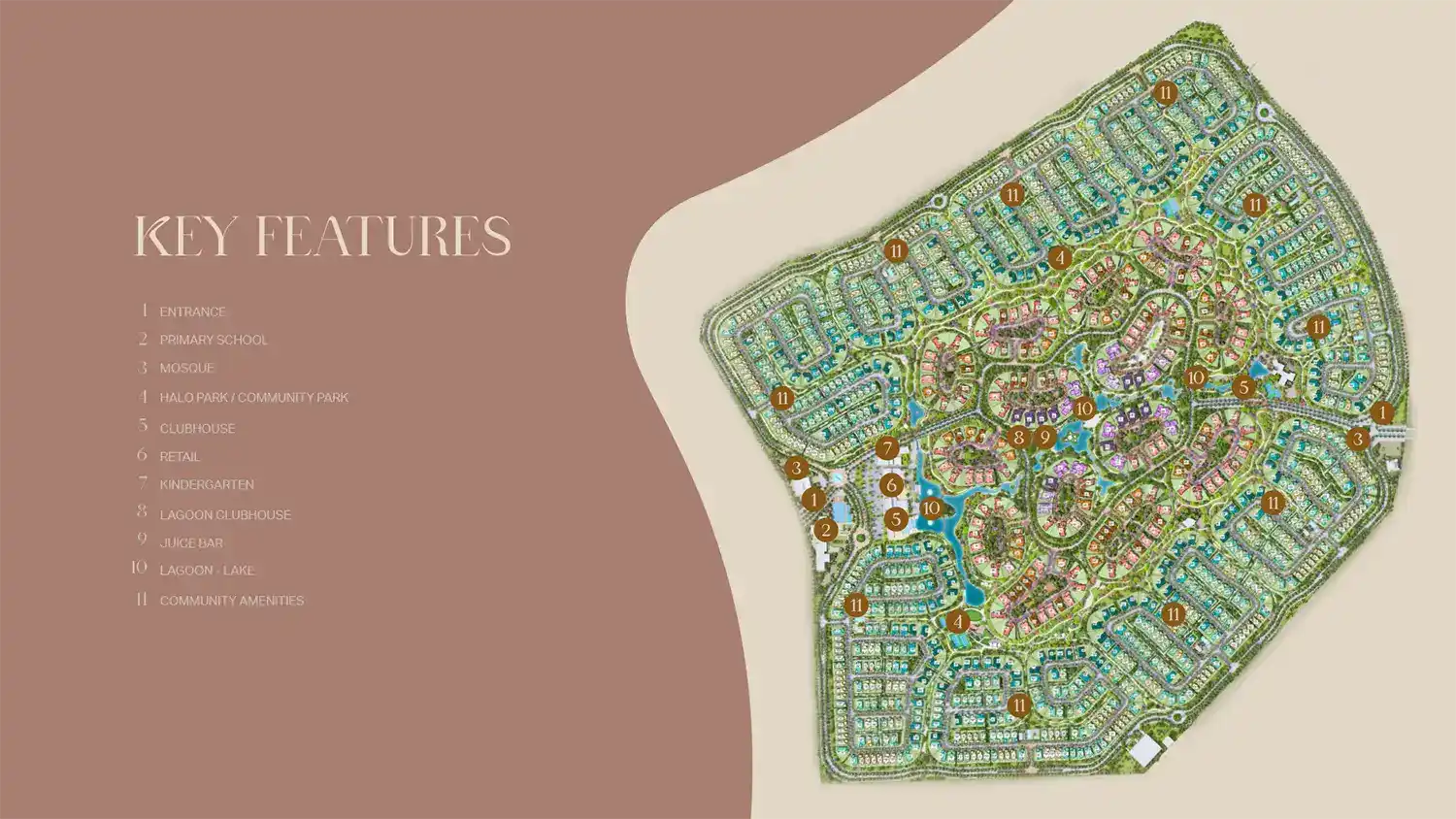 Green spaces and serene waterways anchor the masterplan fostering wellness and leisure.